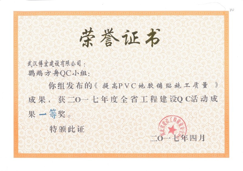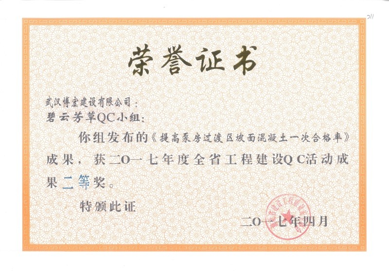 2017年度全省工程建設QC活動成果一等獎(博宏先鋒小組)