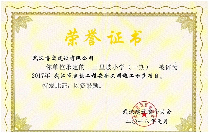 武漢市建設(shè)工程安全文明施工示范項(xiàng)目(三里坡小學(xué))