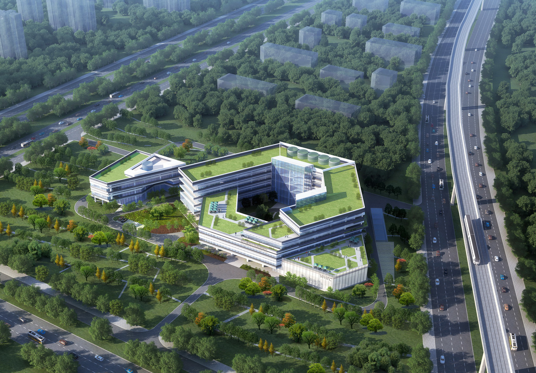 武漢食品檢驗檢測中心項目位于東西湖區碼頭潭公園西側,總建筑面積3.35萬平方米,包含單體建筑2棟,造型別致,建成后將成為東西湖區又一處標志性建筑。