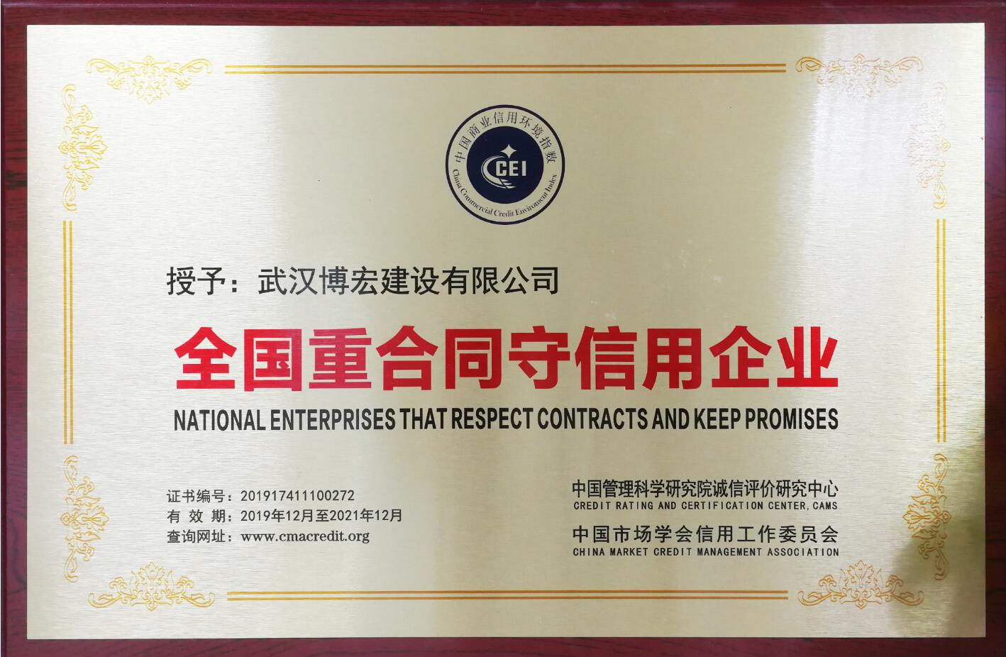 ???? 近日,博宏建設(shè)被中國管理科學研究誠信評價研究中心、中國市場學會信用工作委員會共同評為“全國重合同守信用企業(yè)”,以表彰公司在嚴格按照合同內(nèi)容來實施、執(zhí)行項目建設(shè)和公司管理方面的誠信行為。