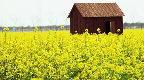陽春三月,春風如沐。桃花紅了、柳葉綠了,長江的水也暖和了。露水吻濕了片片綠葉,整個江城散發出如酒似蜜的清香。田里金黃的油菜花,成了蝴蝶的天地,美麗的蝴蝶在金黃色的舞臺上跳著柔和而優美的舞姿,偶爾一陣微風吹來,油菜花立刻涌起了高低起伏的“金浪花”,遠遠望去,令人美不勝收!——這是我記憶中的春天油菜花地。
