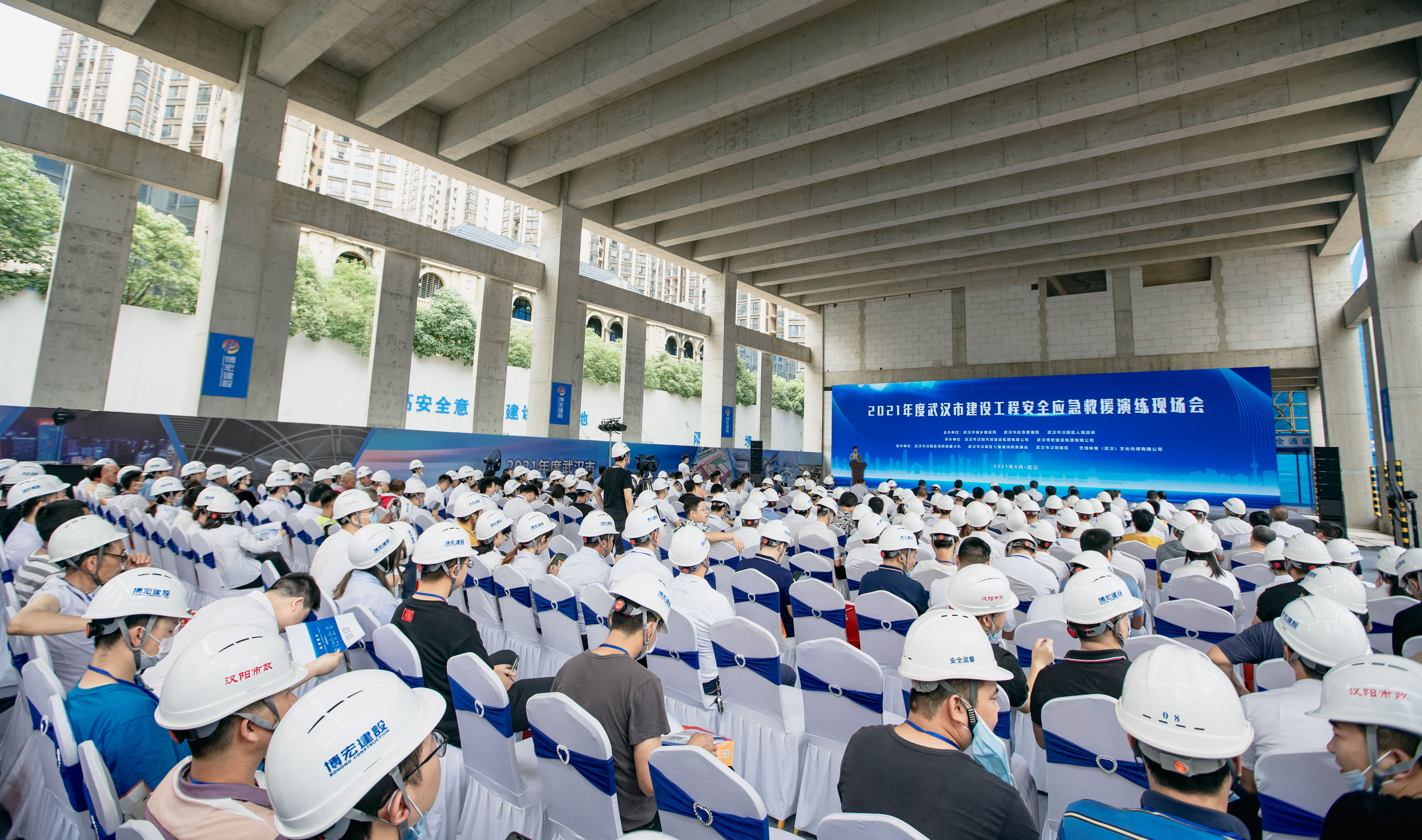 以全國第20個“安全生產月”為契機,“2021年度武漢市建設工程安全應急救援演練現場會”活動在漢陽市政博宏公司漢陽市政建設大廈項目現場順利舉行。武漢市城鄉建設局副局長榮先國、武漢市應急管理局副局長喻思源、武漢市漢陽區副區長蔡松、湖北省質安總站副站長周偉、武漢市安全站站長楊劼、武漢建筑業協會秘書長李祥林、漢陽區建設局局長胡紅勝、漢陽區應急管理局局長李漢光、各區建設局、相關建設單位及同行施工單位共計400余人參加本次活動。活動由漢陽市政集團公司、漢陽市政博宏公司共同承辦。