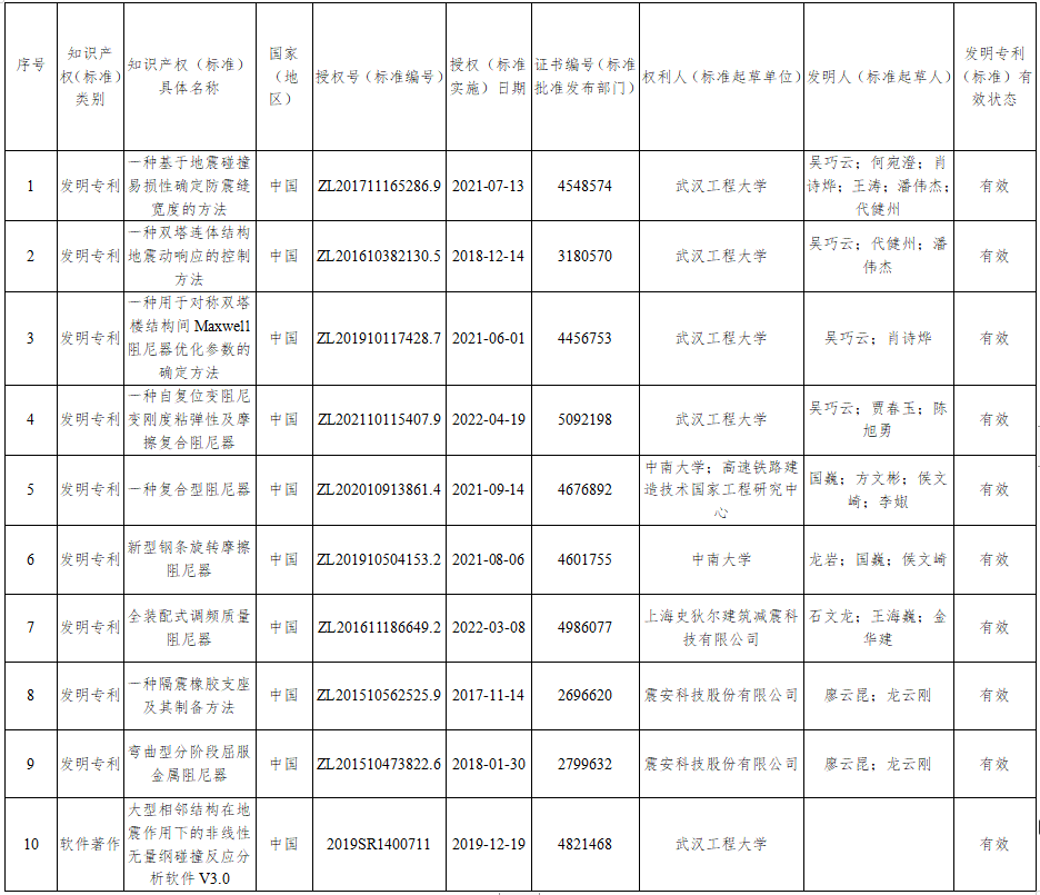 主要完成單位:武漢工程大學、中南建筑設(shè)計院股份有限公司、震安科技股份有限公司、上海史狄爾建筑減震科技有限公司、中南大學、武漢博宏建設(shè)集團有限公司、福州大學、湖南省建筑設(shè)計院集團股份有限公司、中信建筑設(shè)計研究總院有限公司、高速鐵路建造技術(shù)國家工程研究中心