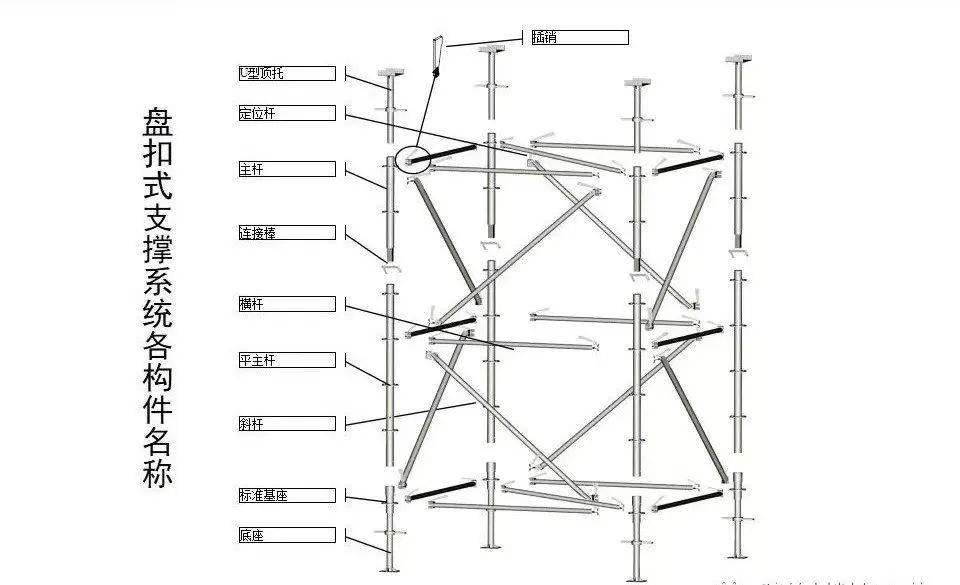 盤扣式腳手架桿件規格多、適用性強,可用于搭設安全通道、爬梯、各種模板支架、外架等。