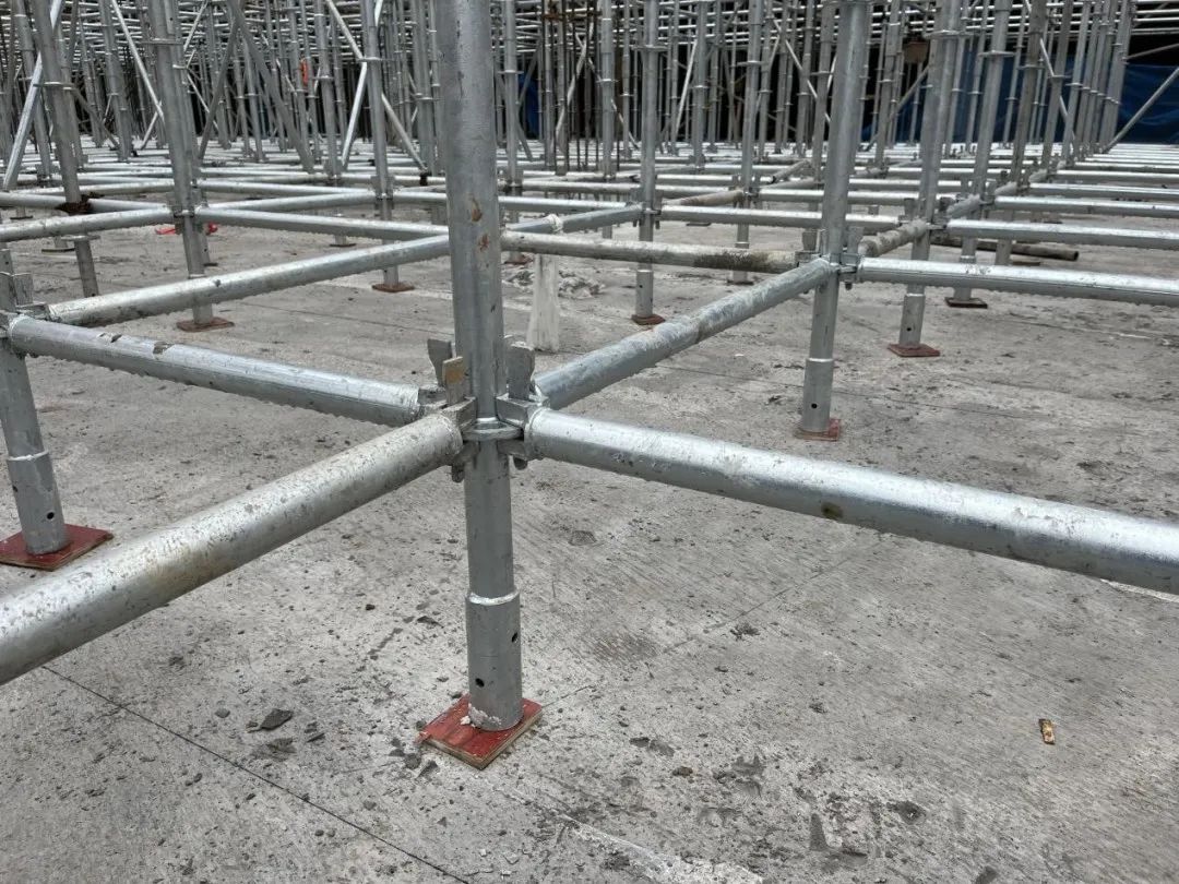 盤扣式腳手架單根桿件長度一般不超過2米,相比傳統的6米普通鋼管,具有質量輕、搭設效率高、安全的優點。合理的節點設計使各桿件傳力均通過節點中心,連接牢固、結構穩定、技術先進。
