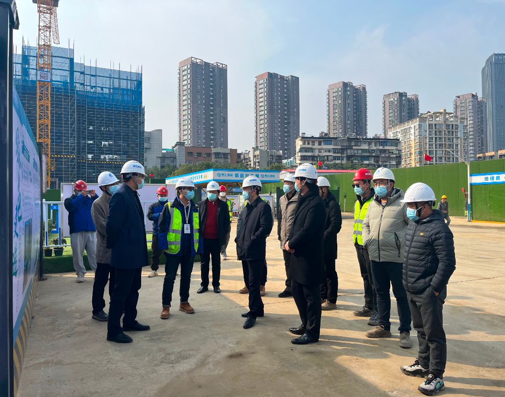 湖北省建設科技與建筑節能辦公室主任董文斌一行蒞臨天創覽江府項目現場考察調研