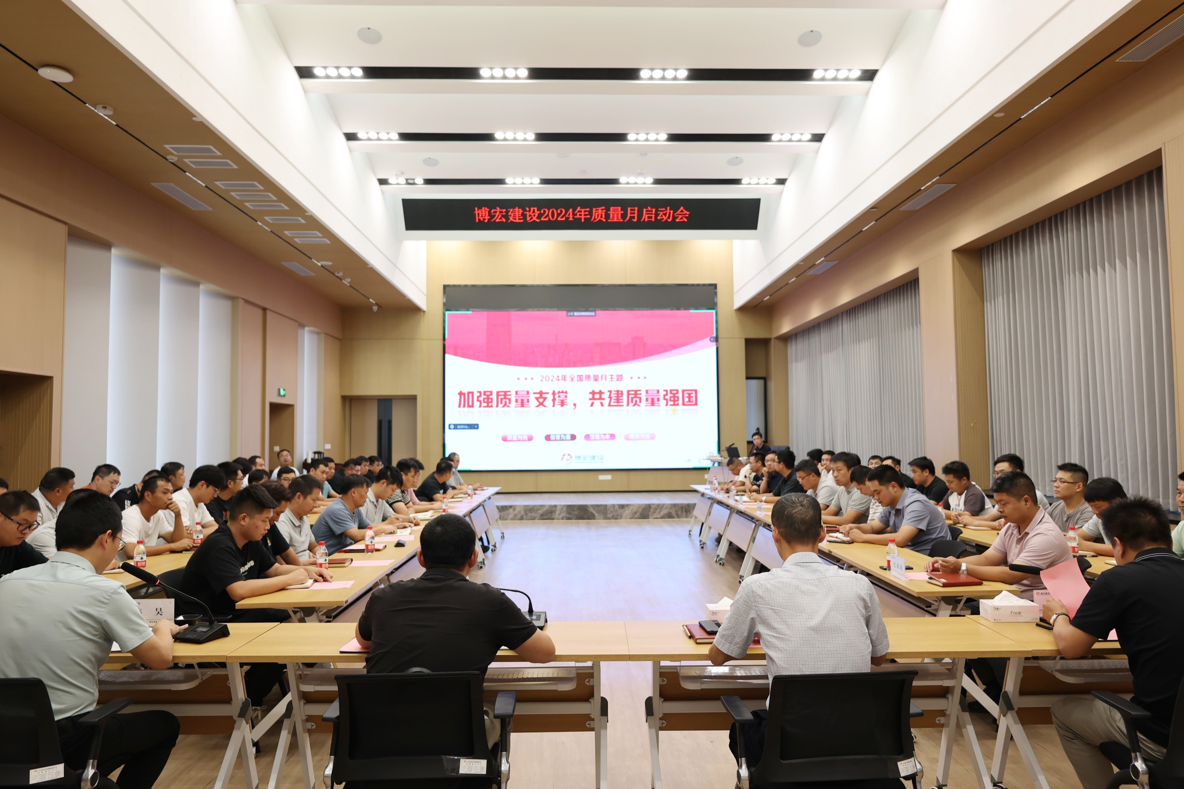 8月29日下午,博宏建設舉辦以“加強質量支撐,共建質量強國”為主題的2024年“質量月”啟動會,黨委書記、董事長、總經理鄒勇,總經理助理李暉,市內外各項目部負責人及質量崗位人員90余人參與活動。會上,對“質量月”的主題、方針、理念和口號進行了深入宣貫,號召全體員工進一步強化質量意識,共同推動項目質量提升。